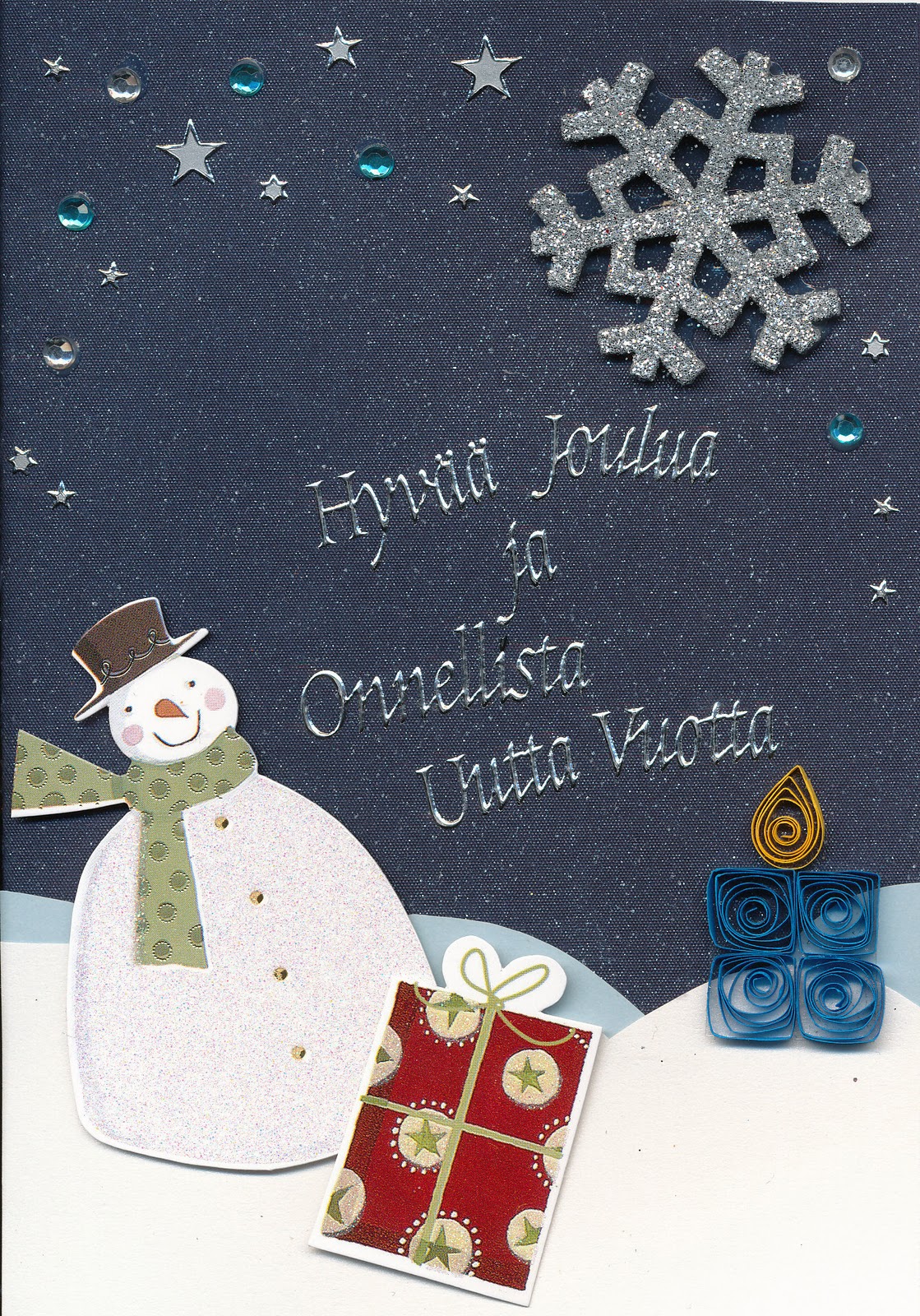 Huhhuh kun oon ollut tänään ahkera! Sain tehtyä KAIKKI joulukortit valmiiks! (nimet ja värssyt ja muut kyllä vielä puuttuu). Ei siihen mennytkään kun koko päivä ;) Sormet on ihan liimassa, naama hileessä ja selkä kipeenä lattialla kyyrissä istumisesta, mutta mitäs pienistä :) Kortit ei kyllä näytä tässä koneella niin kivoilta kun ne livenä näyttää :/ Jotenkin skanneri pilas ne... No mutta anyway, I´m happy :) Skannasin vaan kansilehdet, kaikki kortit siis avattavia. Ja skannauksessa jäi myös lähes kaikista korteista joku reuna pois, mutta ei anneta sen häiritä! :) Tässäpä näitä: